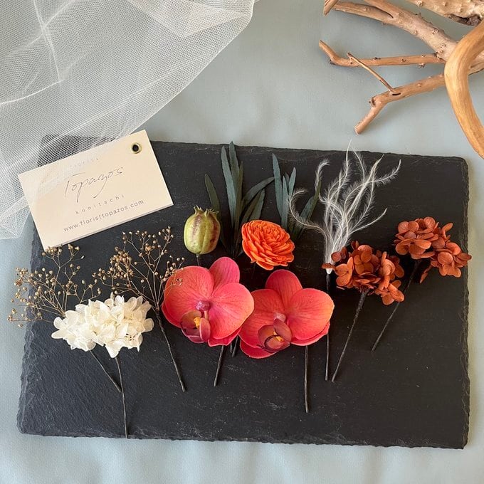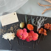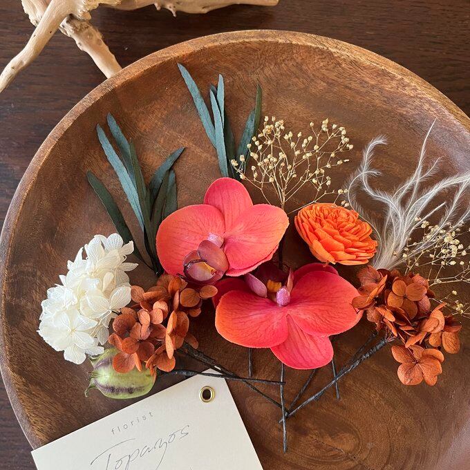 #卒業式 #成人式 #ウェディング #ウェディングフォト #フォトウエディング#白無垢 #振袖 #結婚式 #前撮り #ナチュラル #大人 #おしゃれ #プリザーブドフラワー #ドライフラワー #ヘッドドレス #ヘアパーツ #ヘッドパーツ #髪飾り #かんざし #かすみ草 #モダン #胡蝶蘭 #ボリューム #華やか #上品 #オレンジ #ブラウン #テラコッタ #レッド #白 #ゴールド #5000円以下 #3000円台 #日本製 #ハンドメイド