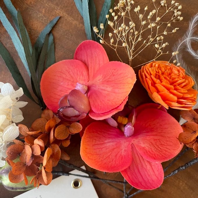 鮮やかな胡蝶蘭のアーティフィシャルフラワー2輪をメインに、