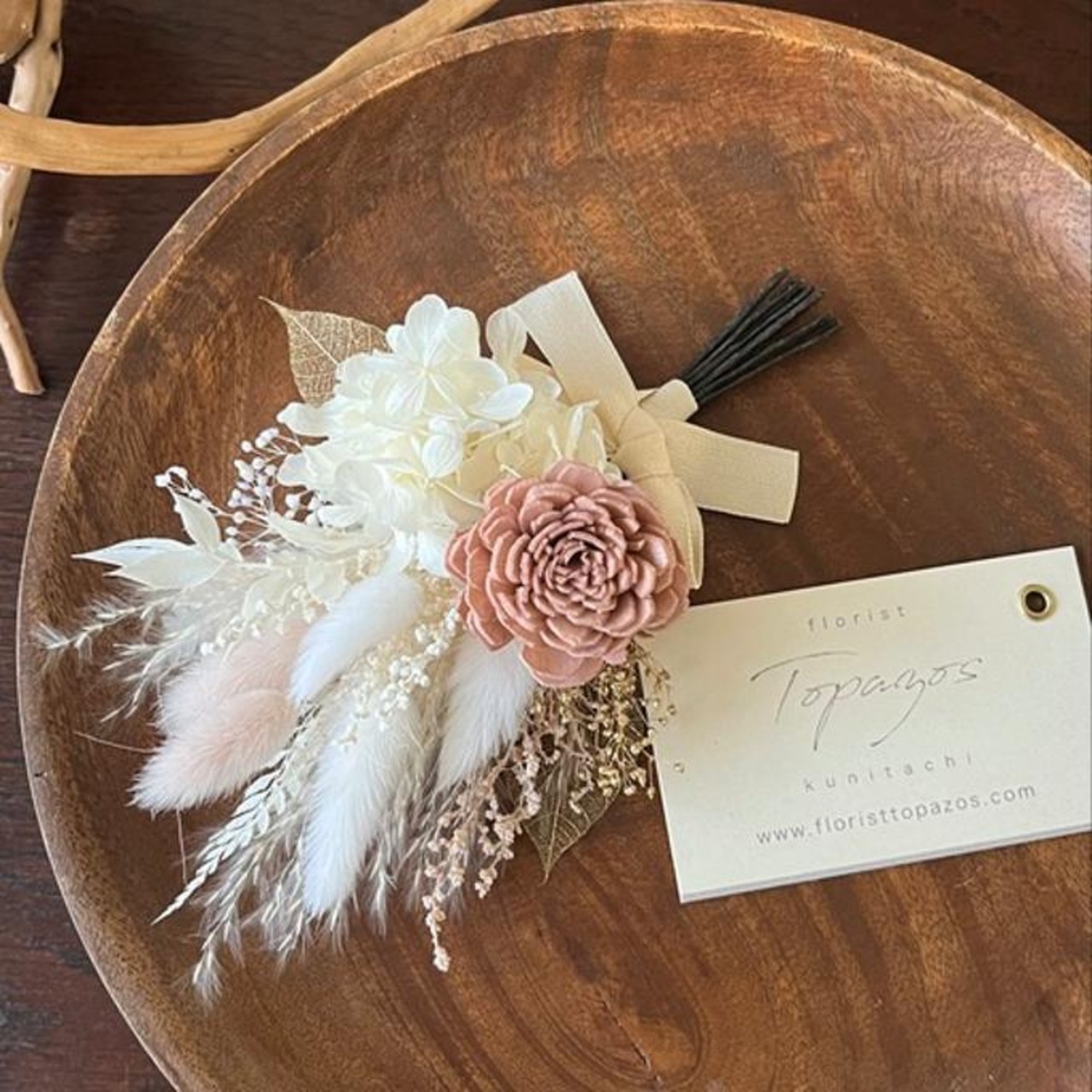あえてパールなどの素材は使わず、自然でシックなテイストでお作りしました。