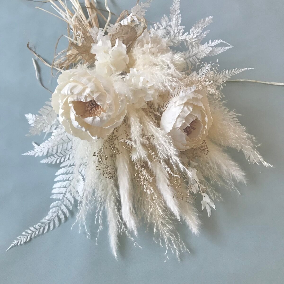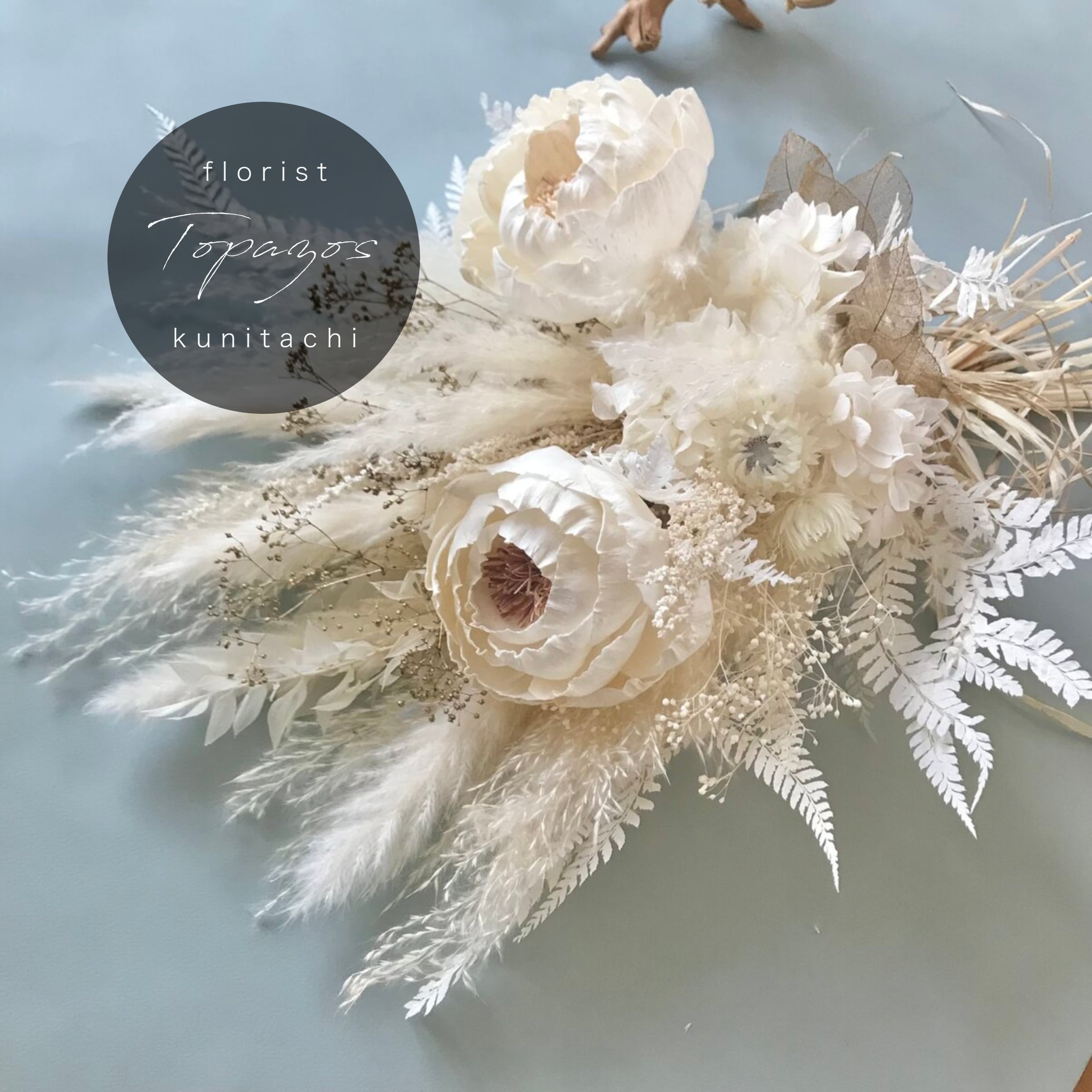 #ウエディング #前撮り #和装 #ドレス #挙式 #白無垢 #成人式 #結婚式 #フォトウエディング #白 #ホワイト #オフホワイト #パンパス #あじさい #ドライフラワー #ゴールド #かすみ草 #ブーケ #新築祝 #花 #ナチュラル #シンプル #大人 #おしゃれ #プリザーブドフラワー #スワッグ #ギフト #誕生日 #記念日 #母の日 #花束 #シック #アンティーク #インテリア #ボリューム #開店祝 #美容院 #ネイルサロン #ソーラーピオニー #ふんわり