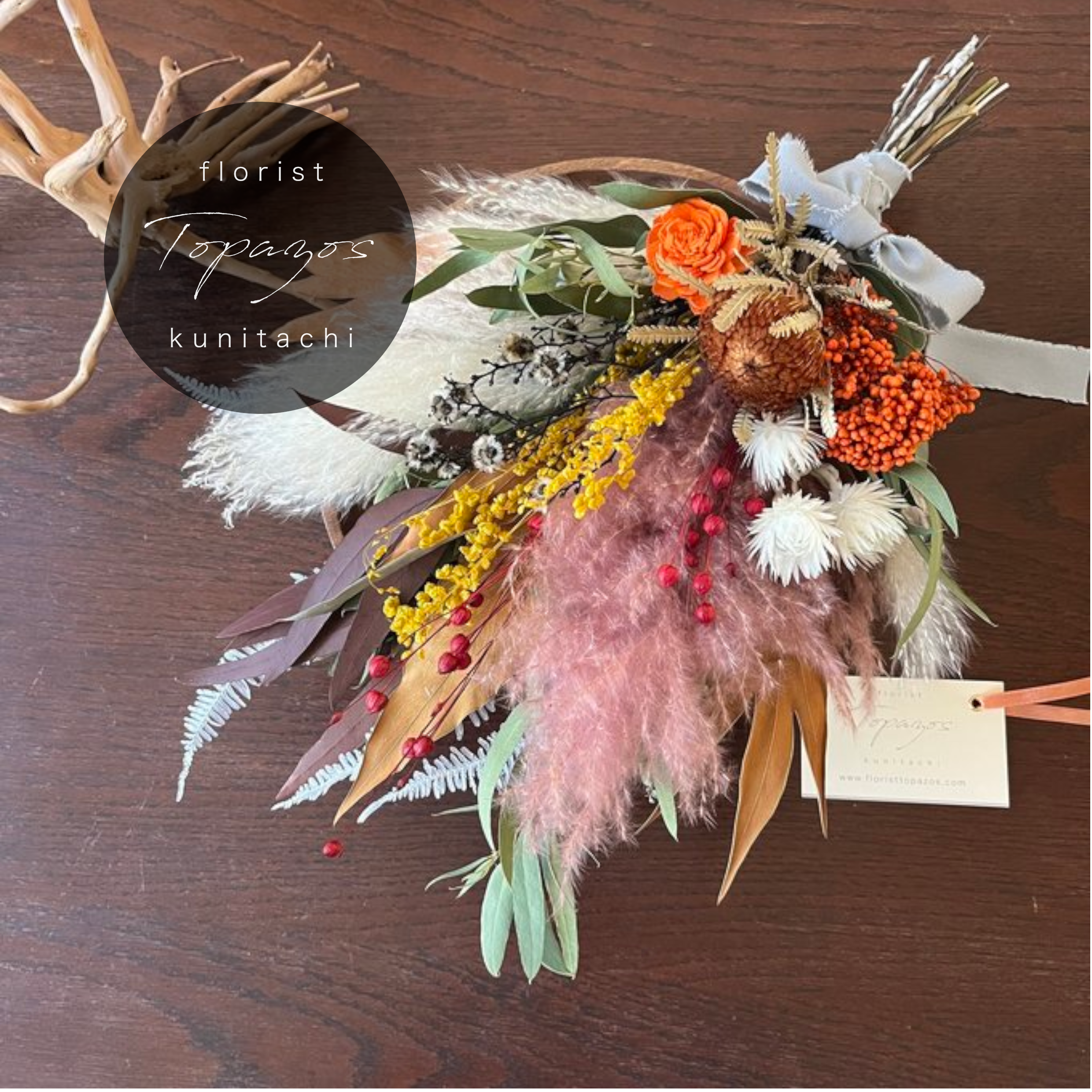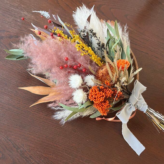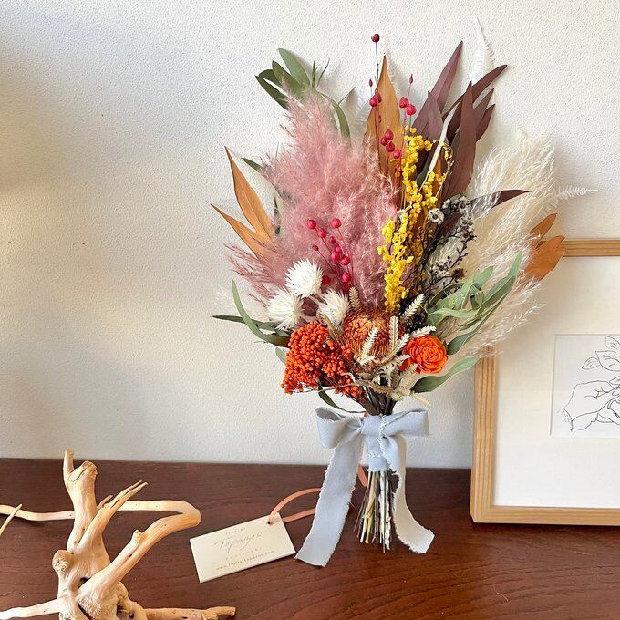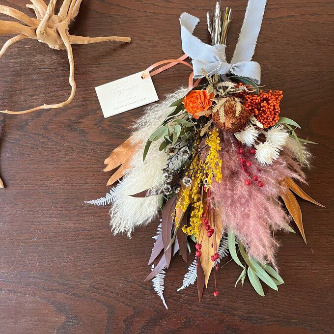 #ウェディング #前撮り #和装 #白無垢 #結婚式 #フォトウェディング #パンパス #ドライフラワー #開店祝 #美容院 #ネイルサロン #ブーケ #新築祝 #おしゃれ #プリザーブドフラワー #スワッグ #誕生日 #母の日 #花束 #かっこいい #シック#インテリア #男性向け #ボリューム #ブリックオレンジ #オレンジ #ブラウン #ワイルドフラワー #グレビレア #マスタード #秋 #冬 #夏