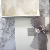 他のお花はシンプルにかすみ草や繊細なリーフ、大きくまとめたアジサイのみなので、大人っぽいイメージでお使いいただけます。